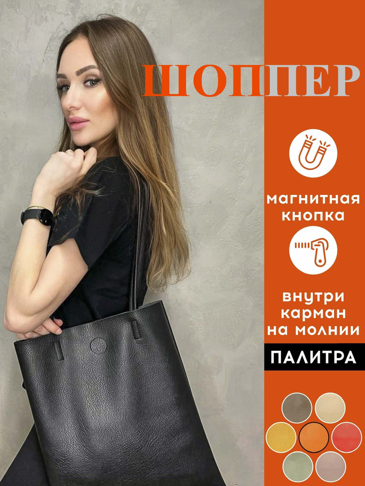 Сумка шоппер с ручками на плечо (1602) Черный