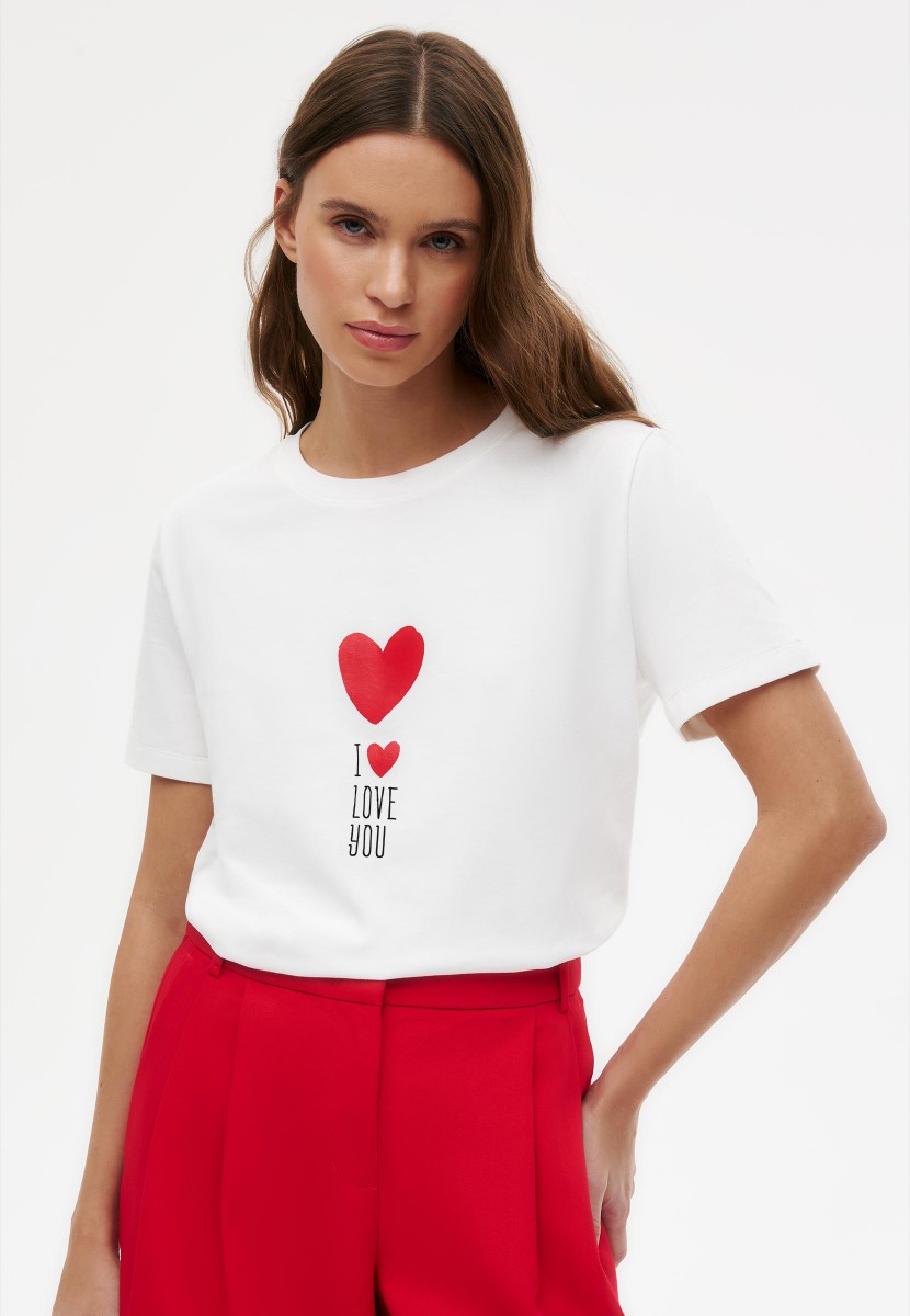 Футболка с принтом «Сердечки», цвет белый, с надписью и сердечком
