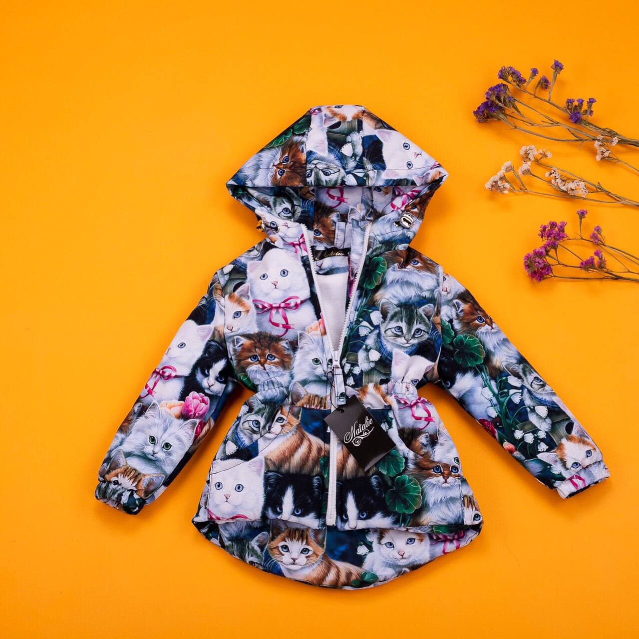 Демисезонная детская парка с капюшоном размер 98 котики от продавца: KD