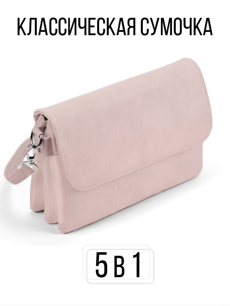 Сумка женская через плечо розовая маленькая кожаная клатч Densy