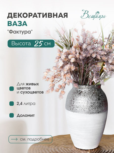 Ваза декоративная Вещицы 25 см / Для декора и цветов / Цвет серый