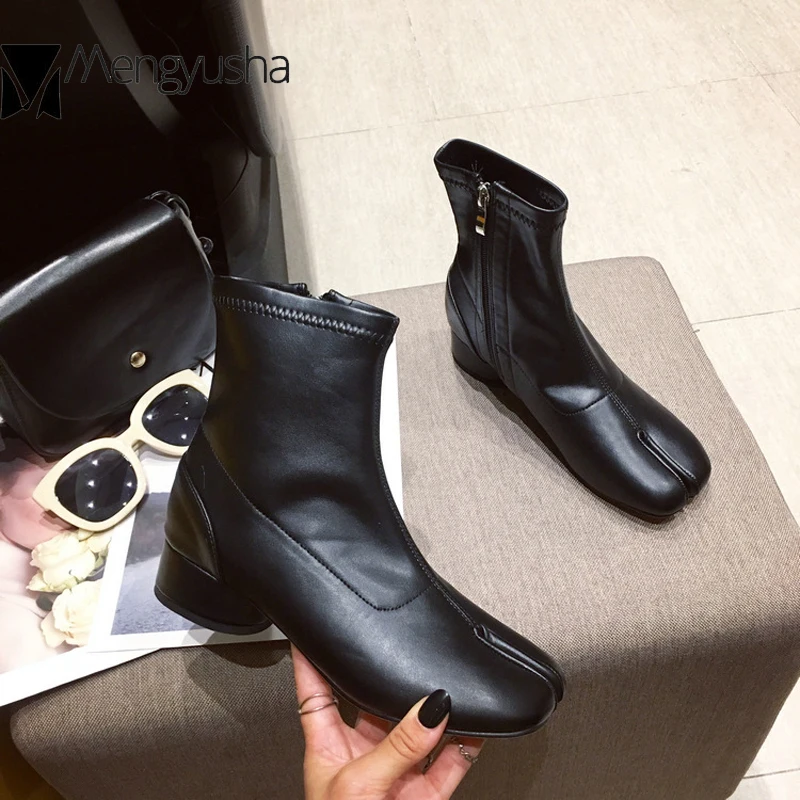 Женские ботинки в стиле ниндзя на низком каблуке с круглым носком